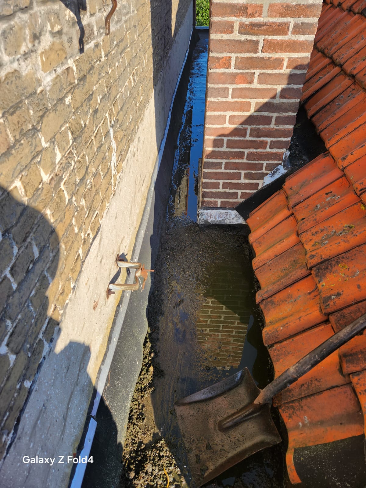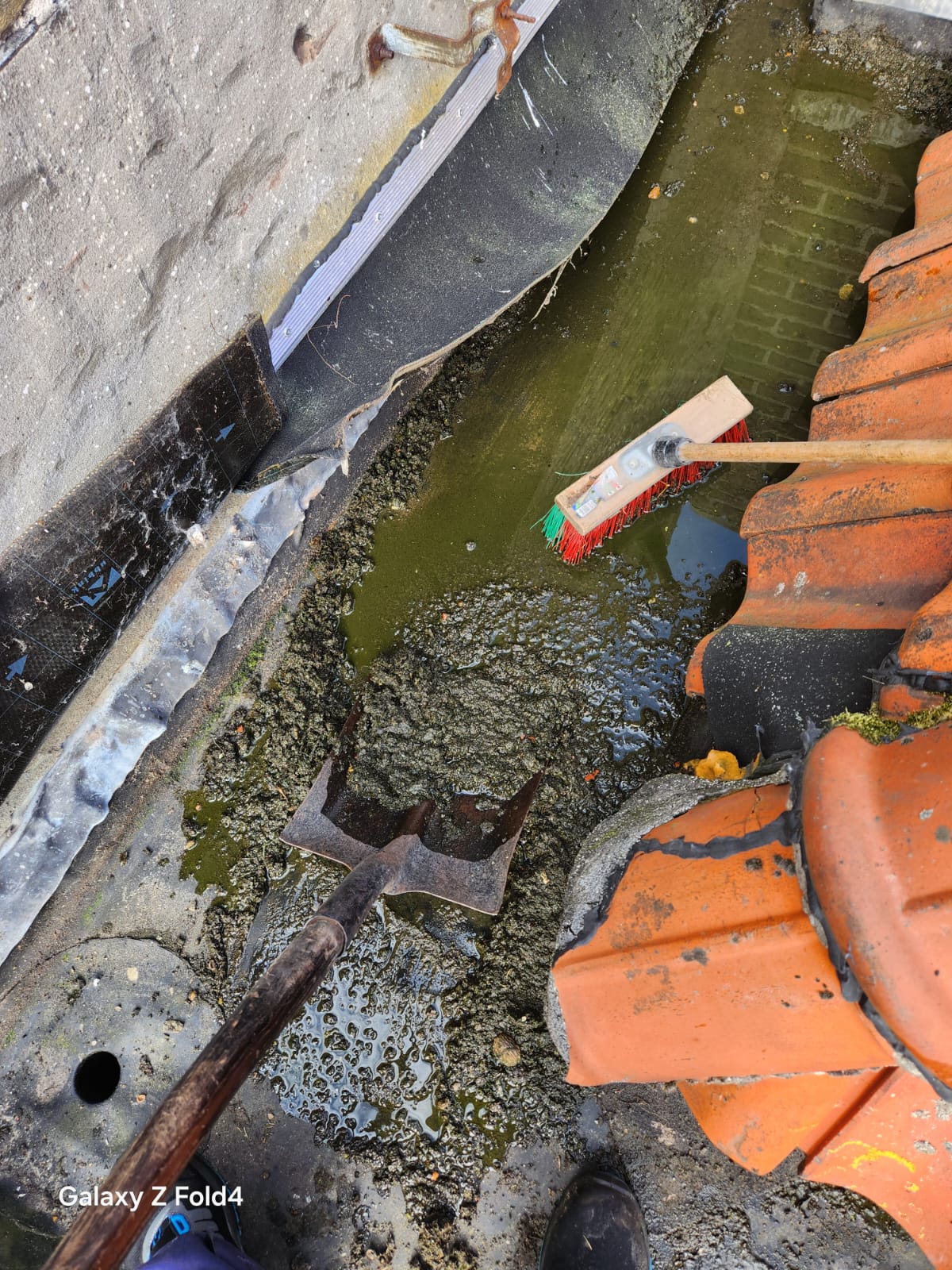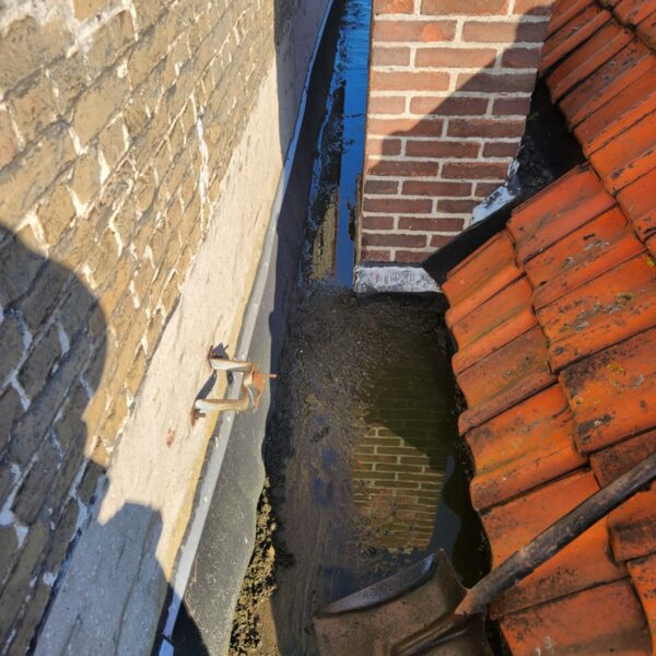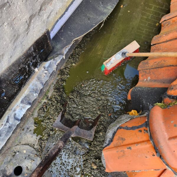 - Controle op lekkages, scheuren en verstoppingen in goten en hemelwaterafvoeren