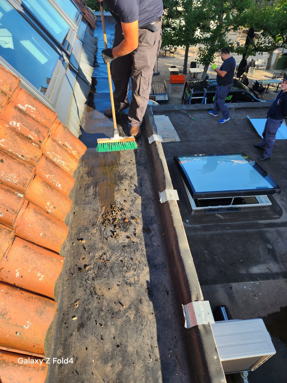 - Reiniging en inspectie van de dakrand en boeiboorden