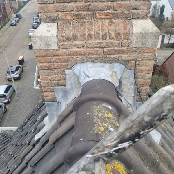 Deze schoorsteenrenovatie Den Haag case study illustreert het belang van tijdige renovatie van verouderde schoorstenen. De bestaande schoorsteen uit de jaren '70 vertoonde ernstige tekenen van slijtage: scheuren in het metselwerk, beschadigde voegen en een defecte schoorsteenkap die regenwater doorliet.